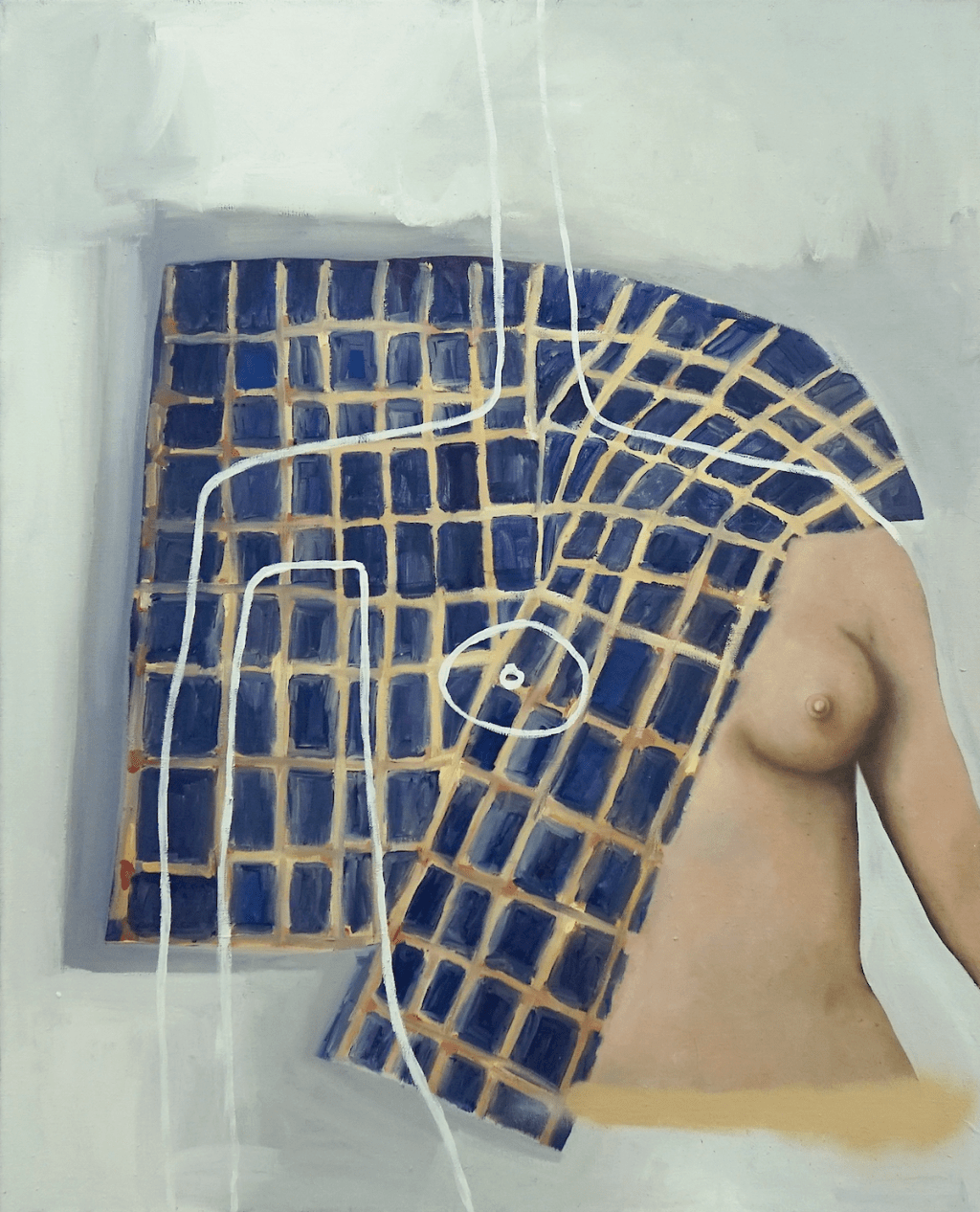 Wie ihr Kollegin Sturlèse, zeigte sie in Leipzig bereits 2019 erste Werke. Die gebürtige Schweizerin stellt somit eine ideele Parallele zu den Romantikern der Düsseldorfer Schule her. Klingt vielleicht weit hergeholt. Aber die Verbindung Düsseldorf-Sachsen hat es bereits im 19. Jahrhundert gegeben. Fast schon wie die Romantiker im 19. Jahrhundert spielt sie mit anderen stilistischen Mitteln um Gefühle wie Sehnsucht zu versinnbildlichen. Anders als die Romantiker bedient sie sich der Sprache der heutigen Fernseh- und Internetgeneration, die Suchtbefriedigung mit Teilaspekten des Lebens betreiben. Da spielt Sexualität ebenso eine Rolle, wie die Definition der eigenen Persönlichkeiten über Avatare, Suchtmittel und eigene Antriebe. „Zugleich beschreibt ihr künstlerischer Ansatz eine spielerische Auseinandersetzung mit den klassischen Sujets des Portraits und Stilllebens in Zeiten potenziell austauschbarer Identitäten in unserer Selfie- und Socialmediagesellschaft“, wird auf ihrer Webpräsenz mitgeteilt.